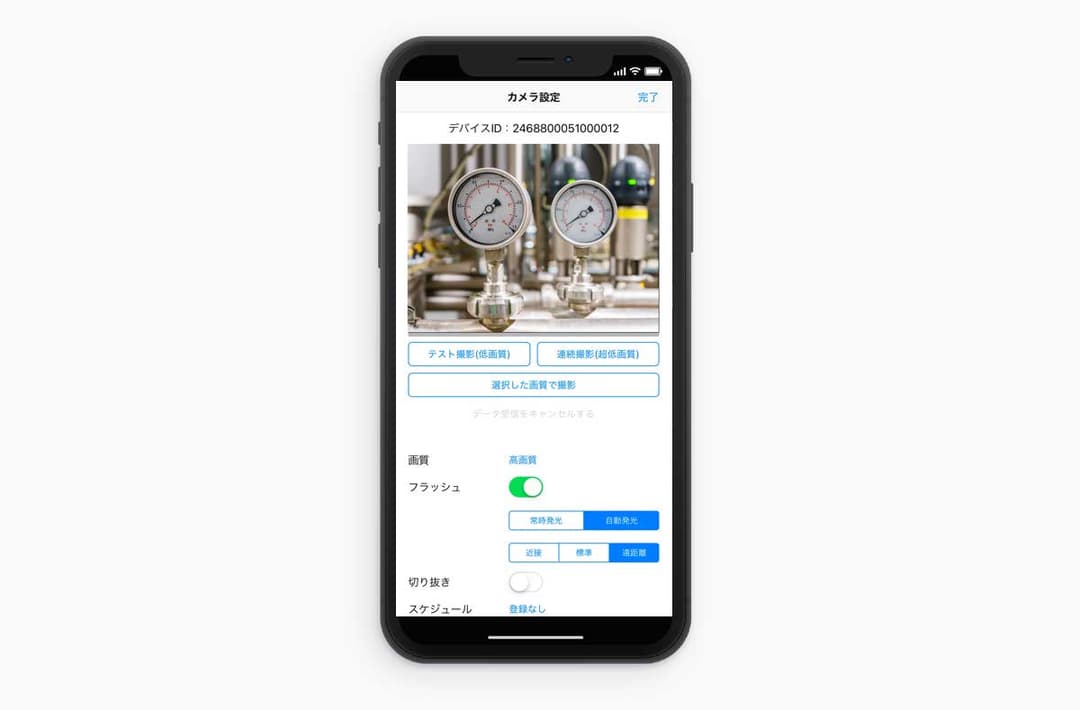 You can use the companion iOS / Android app to run test captures and configure camera settings. Right after installation, you can check and adjust captured images on-site. The app also allows you to adjust camera position, change resolution, and set capture schedules while running continuous tests.